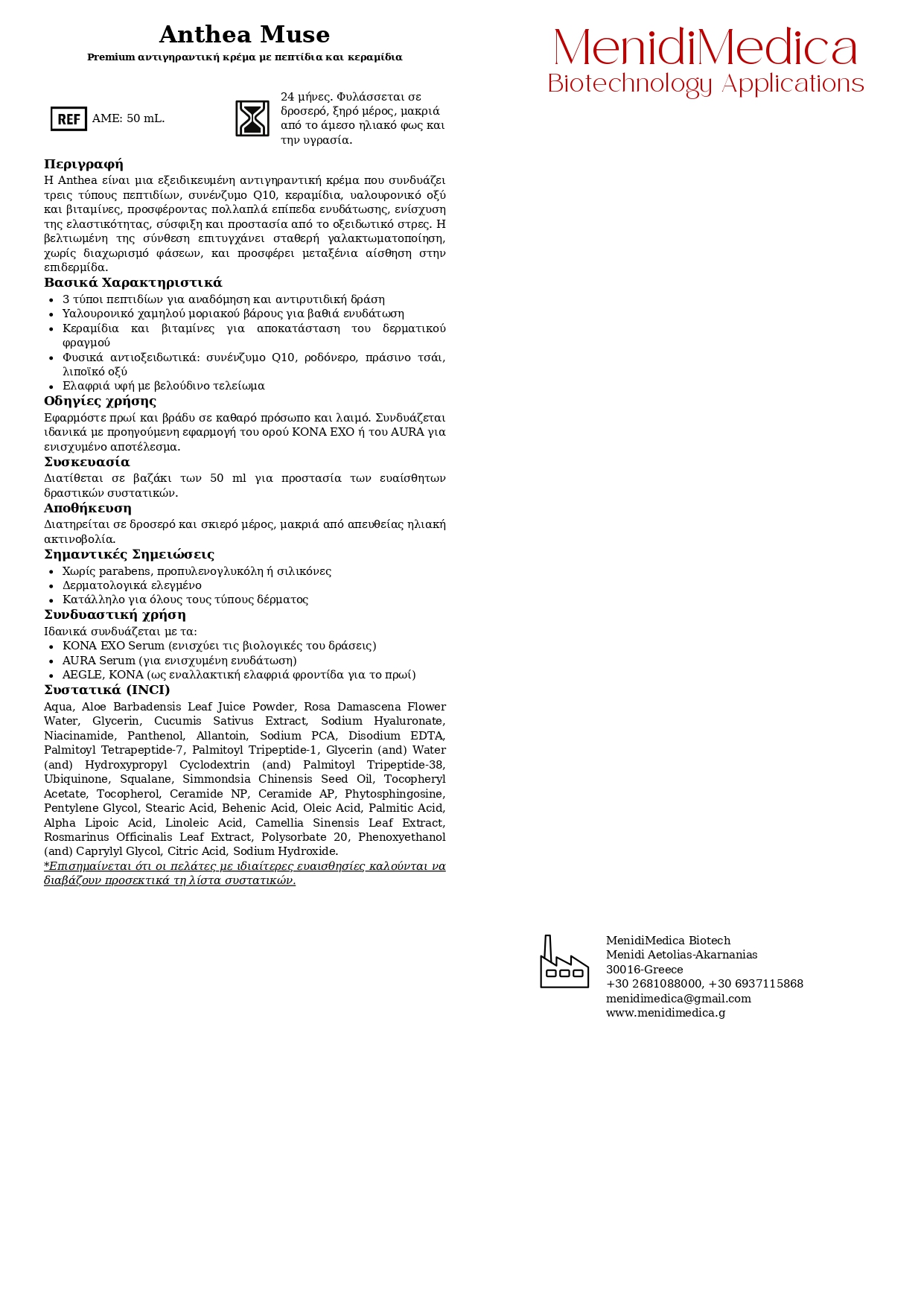 Σε πρακτική συσκευασία 50 mL, το Anthea Muse System είναι ο απόλυτος σύμμαχος στην καθημερινή φροντίδα του δέρματος.