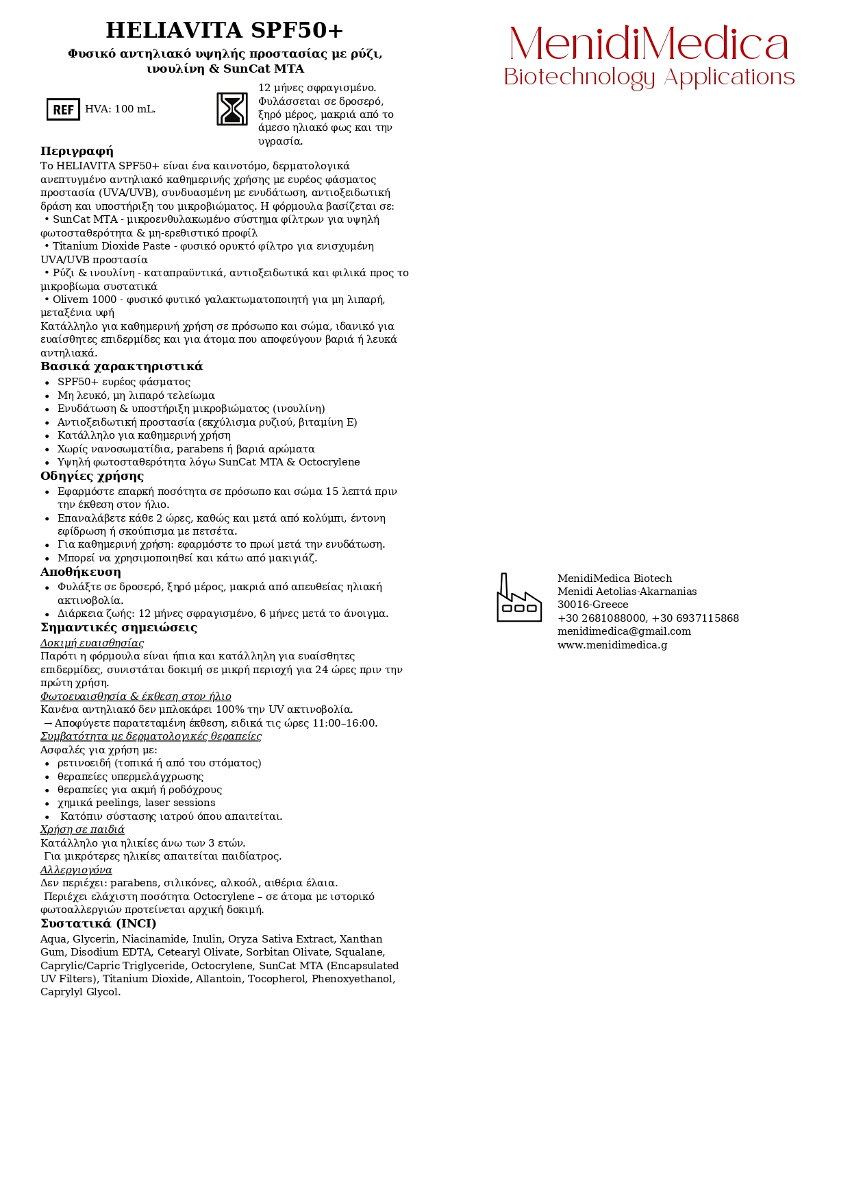 Αντηλιακή κρέμα προσώπου-σώματος SPF 50+ PA++++ με εκχύλισμα ρυζιού και ινουλίνη